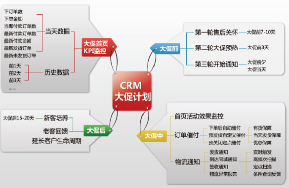 电商业务中,由于整体低价的销售策略CRM的侧重点主要在打造良好的线上服务流程提升客户体验,同时以营销为导向,通过跟线上营销活动的搭配来实现客户的重复购买。